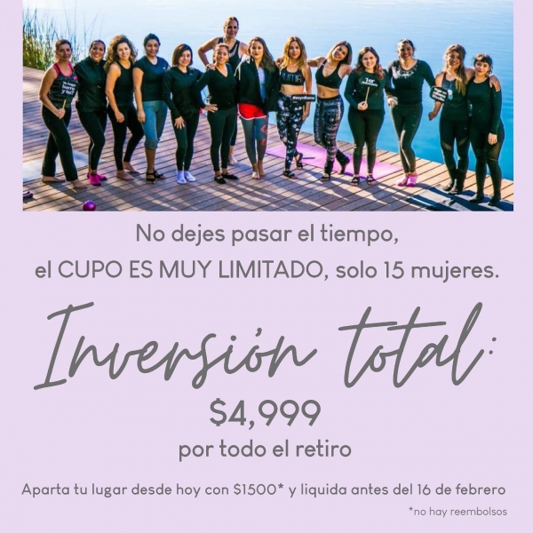 No dejes pasar el tiempo EL CUPO ES MUY LIMITADO, solo para 15 mujeres